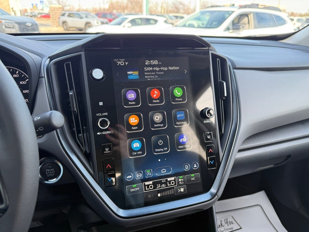 - Radio: Subaru 11.6" Multimedia Plus System -inc: AM/FM stereo, HD Radio, multi-touch gesture high resolution display screen, voice activated controls, Bluetooth® audio streaming and hands-free phone connectivity, Bluetooth® hands-free SMS text messaging connectivity, iPod control capability, smartphone integration: wired and wireless Android Auto w/full screen view and wireless Apple CarPlay w/full screen view, USB and Over The Air (OTA) audio system update, steering wheel audio system and Bluetooth® control switches, 6 speakers (2 dash panel tweeter, 2 front door and 2 rear door), illuminated 3.5mm auxiliary input jack, illuminated front USB A and C input/charge ports, connected services operation indicator, SOS emergency assistance: red SOS button and enhanced roadside assistance: blue i-button